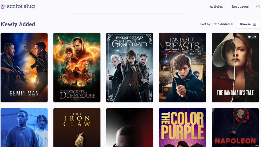 The concept of Script Slug is pretty simple. It’s a database where you can find most scripts you would think to search for. I’ve heard many successful and renowned screenwriters say that you need to read screenplays to write screenplays, good ones at least. I use it if a new idea reminds me of a movie I saw before; sometimes I go back and read the script for that movie and it gives me clarity on how to write my new one.